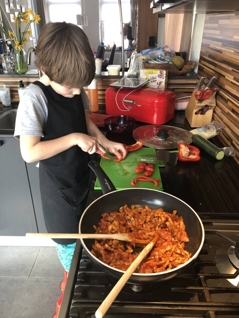 In de avond vroeg Lorenzo mee mocht helpen met koken. Mama als ik geen profvoetballer kan worden dan wil ik denk ik wel kok worden. Natuurlijk mocht hij mee helpen, dus samen broodjes kip shoarma gemaakt. Hijheeft alle groenten gesneden, de shoarma opgebakken en de broodjes mee in de over gelegd. Het opensnijden en vullen hebben we samen gedaan. Heerlijk hoe trots hij hier op kan zijn en het is genieten omdat samen te kunnen doen en je kind te zien stralen.