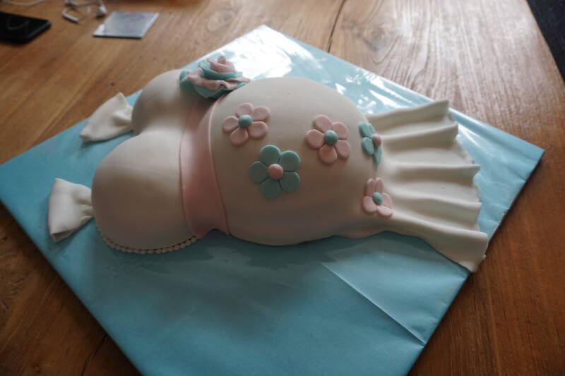 Mijn aller eerste dikke buiken taart gemaakt voor de zus van een goede vriend van mij.